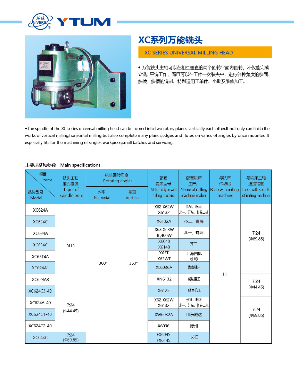 XC系列萬能銑頭